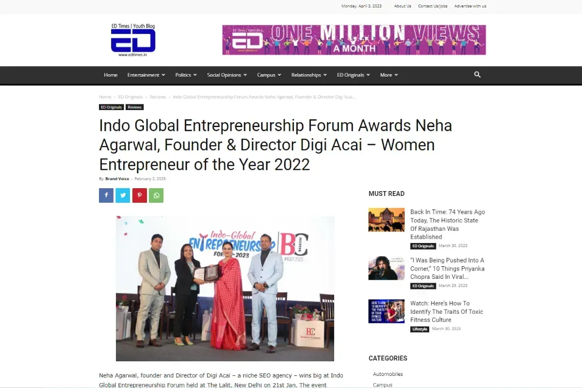 Founder of Digi Acai, India’s 1Cr+ D2C SEO Agency